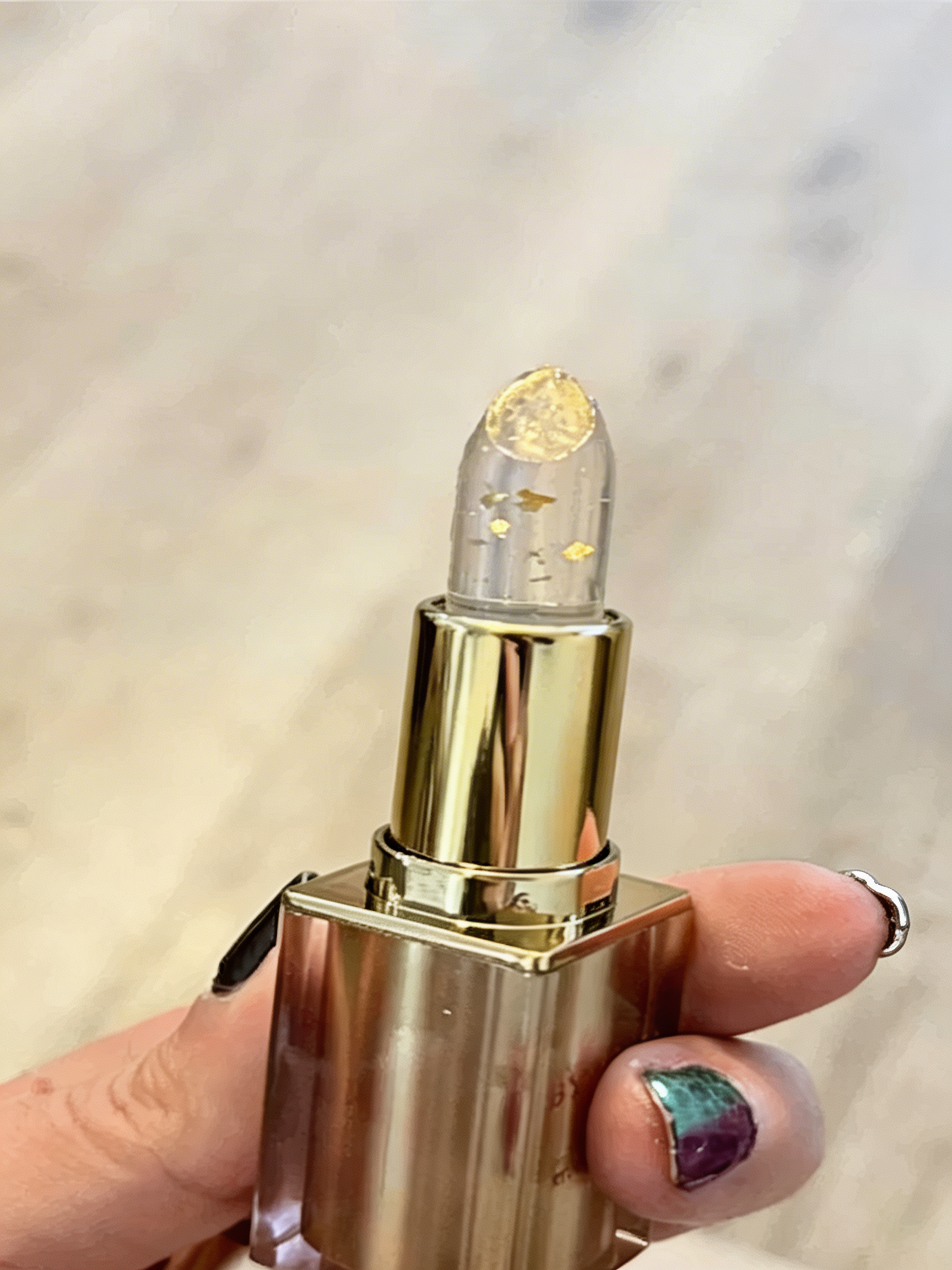Quand j'ai vu le tube transparent avec les paillettes d'or, j'ai tout de suite craqué.